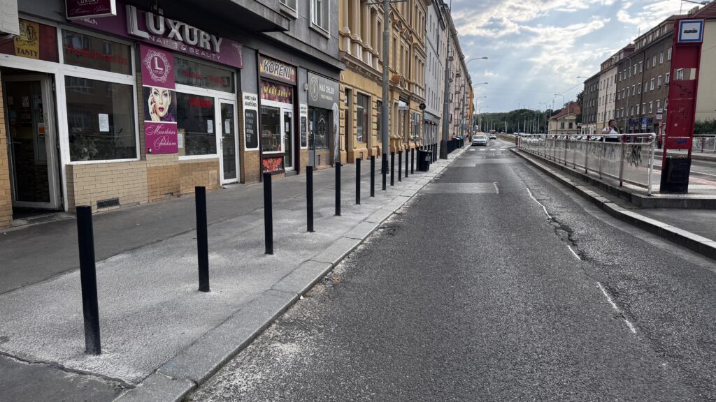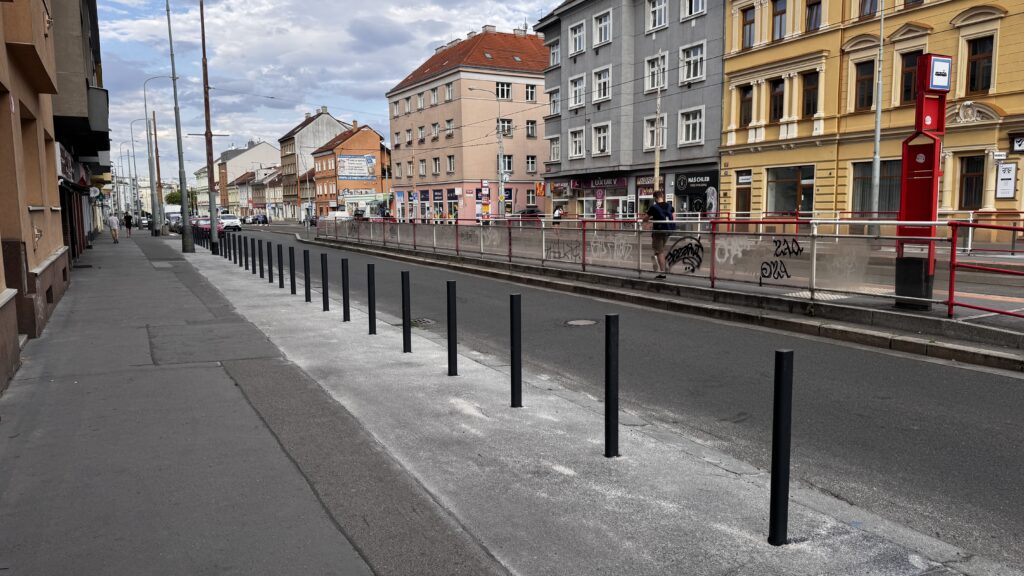Antiparkovací sloupky na Bělohorské, u zastávky U Kaštanu. Foto: MČ Praha 6