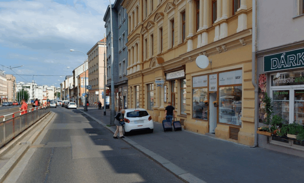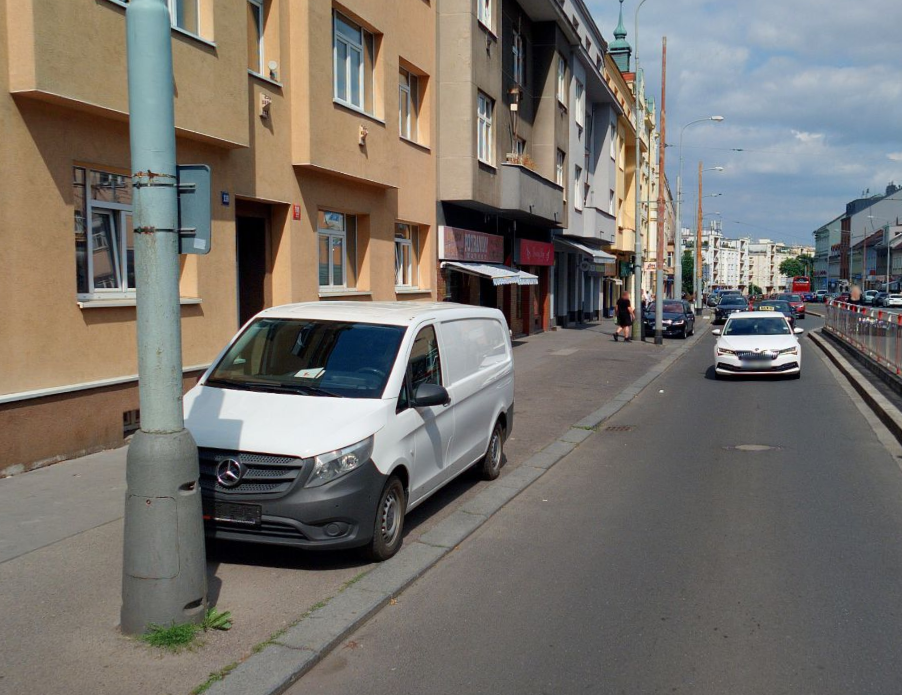 Původní stav s nelegálním parkováním na chodníku. Zdroj: mapy.com